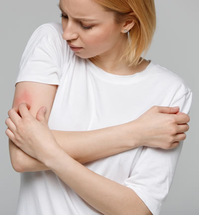 Das Kontaktekzem wird durch Berührung mit Reizstoffen ausgelöst. Die irritierten Hautpartien können stark jucken oder brennen und die Haut ist gerötet. Die Entzündung verschwindet wieder, sobald wir den potentiellen Auslöser entfernt haben.