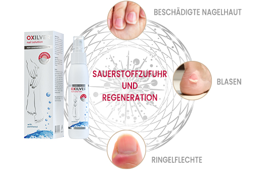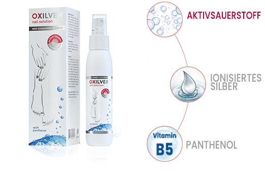 OXILVER® Nail Solution für die Nägel in Sprayform ist ein wirksames und sicheres therapeutisches Kosmetikprodukt auf der Basis von Aktivsauerstoffverbindungen, das zur Pflege und Unterstützung von Nagel- und Nagelhautproblemen entwickelt wurde. Wenn die Lösung mit der Nageloberfläche in Berührung kommt, wird Aktivsauerstoff freigesetzt, der in Kombination mit ionisiertem Silber und dem Zusatz von Panthenol die Nägel mit Sauerstoff versorgt, regeneriert, reinigt und pflegt und gleichzeitig eine leicht antiseptische Wirkung hat.