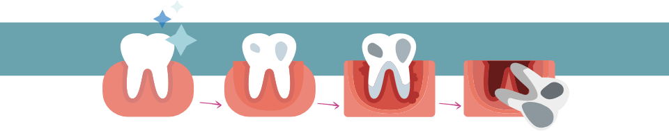 Il progredire della patologia causa l’accumulo di microbi e di conseguenza una forte reazione immunitaria, l’alterazione del tessuto connettivo, fino alla perdita di massa ossea. Non avendo più un sostegno forte nella massa ossea delle mascelle, i denti iniziano a staccarsi, il che conduce ad ulteriori complicazioni della patologia.