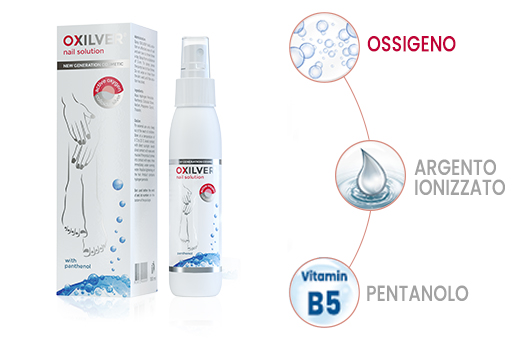 OXILVER® Nail spray contiene: acqua, perossido di idrogeno*, pantenolo, argento ionizzato, profumo, glicole propilenico, triacetina.