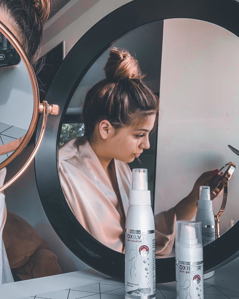 OXILVER® Skin sono cosmetici terapeutici efficaci e sicuri a base di composti di ossigeno attivo, destinati alla cura e come trattamento coadiuvante dei problemi della pelle. Quando il gel viene a contatto con la pelle, viene rilasciato ossigeno attivo che, in combinazione con argento ionizzato, acido ialuronico e Aloe vera, ossigena, rigenera, pulisce, nutre la pelle e ha un’azione leggermente antisettica.