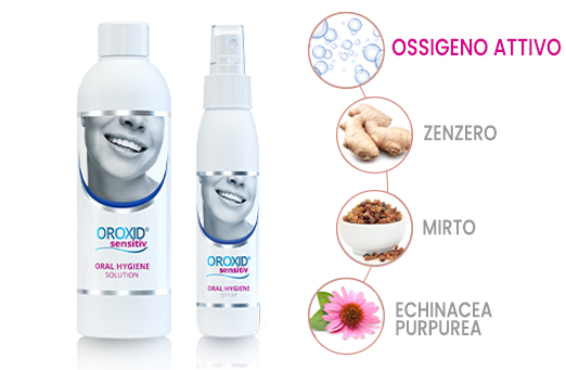 OROXID® è una linea di prodotti innovativi, brevettati e certificati per uso medico a base di ossigeno attivo. Hanno lo scopo di mantenere le gengive sane e di alleviare le infiammazioni del cavo orale. L’unicità di questi prodotti si riflette nel nuovo principio d’azione, che ossigena, rigenera e disinfetta il cavo orale.